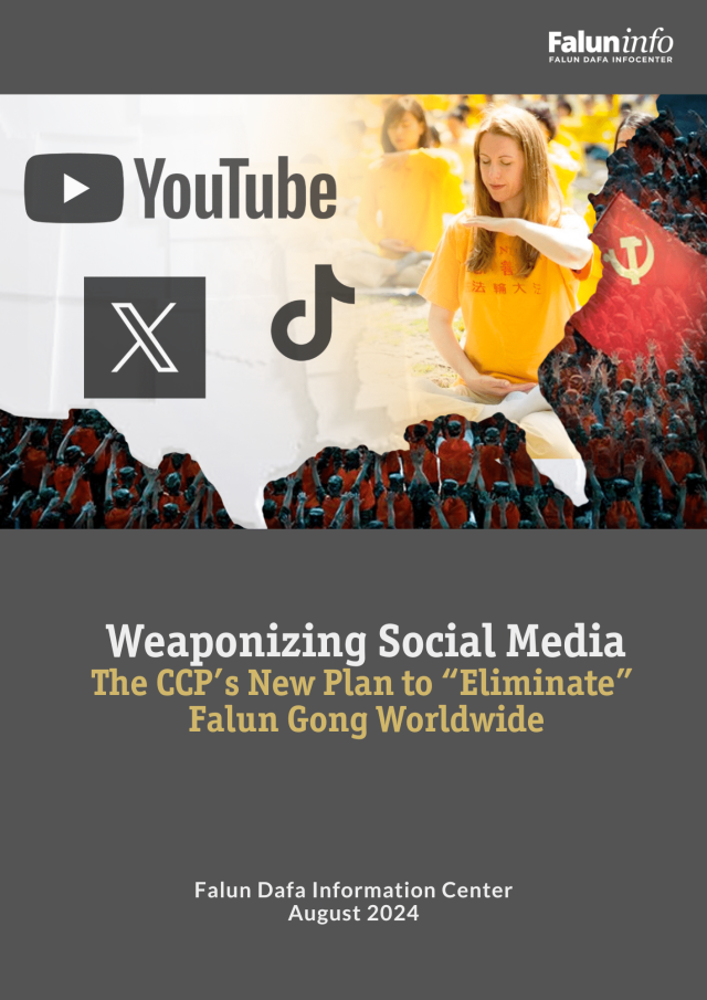 În iunie și iulie 2024, Centrul de Informare Falun Dafa a obținut o serie de informații constând în note de la reuniuni interne și rapoarte ale Ministerului Securității Publice din China și ale unui think tank de stat. În aceste note se afirmă în mod explicit că regimul intenționează să își intensifice strategia de „eliminare” a Falun Gong în întreaga lume, vizând în special Statele Unite. Notele se refereau la utilizarea unei varietăți de tactici—cum ar fi sprijinirea YouTuberilor anti-Falun Gong, transmiterea de relatări false către mass-media din străinătate și activarea spionilor infiltrați în comunitatea Falun Gong.