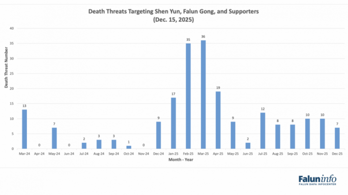 De la mijlocul lunii noiembrie până la jumătatea lunii decembrie 2025, o escaladare susținută a amenințărilor anonime, a schemelor de uzurpare a identității și a acțiunilor de intimidare transfrontalieră a vizat Falun Gong, Shen Yun Performing Arts, organizații media partenere și oficiali. Incidentele s-au extins în Taiwan, Australia și Statele Unite, autorii exploatând în mod repetat sistemele de trimitere de cereri online, conturile de e-mail falsificate și identitățile furate—inclusiv pe cele ale unor politicieni taiwanezi, activiști pentru democrație din străinătate, practicanți Falun Gong și persoane din conducerea persoanelor juridice afiliate Falun Gong.