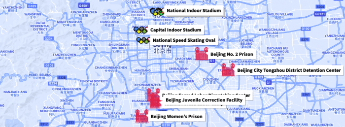 Deși există mii de închisori, centre de detenție, închisori negre și alte centre pentru deținerea persoanelor în toată China, vă prezentăm câteva detalii a câtorva dintre cele mai apropiate de locațiile Jocurilor Olimpice din Beijing.