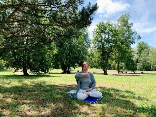 Sandra face al cincilea exercițiu al Falun Gong, meditația.