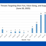 În perioada 29 mai–17 iunie, mai multe mesaje anonime conținând amenințări violente au fost trimise „Centrului de Informare Falun Dafa” prin intermediul formularelor de contact online. Mesajele, redactate în limba chineză și folosind frecvent identități false—expeditorii pretinzând a fi practicanți Falun Gong, fondatorul Falun Gong sau un anume dezertor chinez—au vizat instituții majore din Statele Unite, printre care Casa Albă, campusul de antrenament Shen Yun din New York și o paradă militară din Washington, D.C. MAI MULT